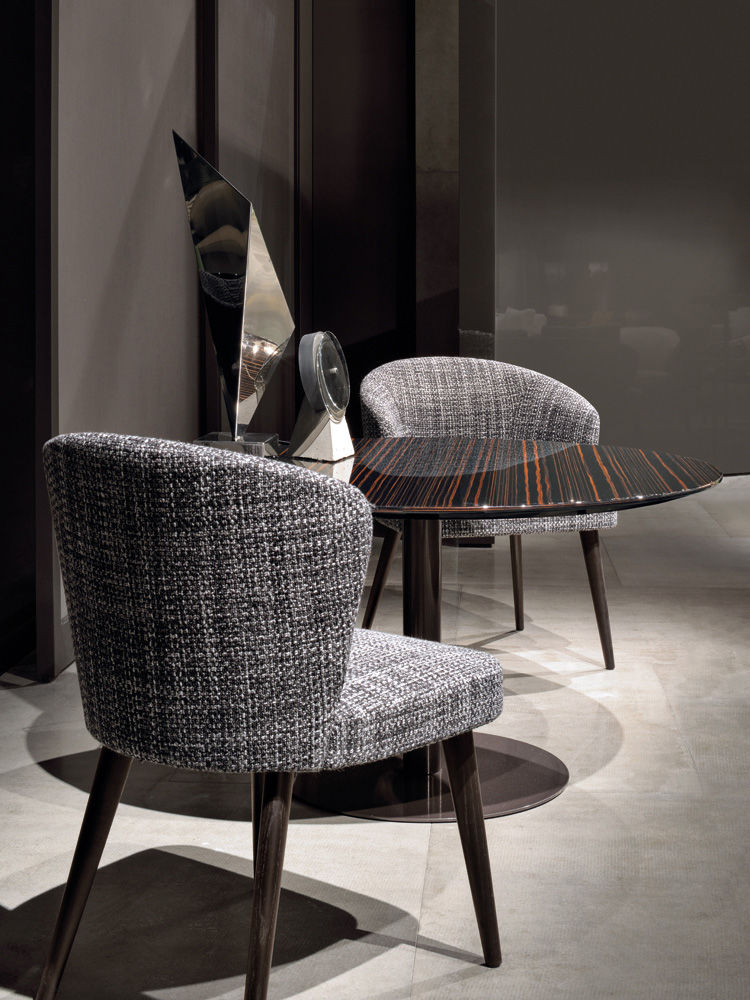 The Bellagio "Lounge" table has a glossy Pewter color painted metal base and the table top is available in several versions: Calacatta marble, ebony veneer and Sand or Mud glossy lacquer finish. Thanks to its clean lines, coherent design and the variety of available finishes, the Bellagio "Lounge" table opens up a wealth of possibilities of use and opportunities for pairing with the many chairs in the collection.