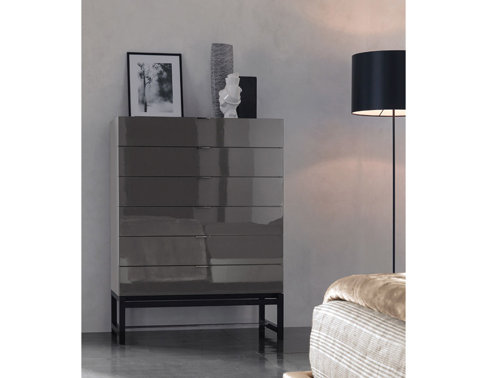 Aesthetically speaking, Harvey’s charm arises from an original combination of three materials: glossy lacquer, stained ash in Moka and Black-Nickel metal accents, the cleverly-sized pieces and the balance of proportions.