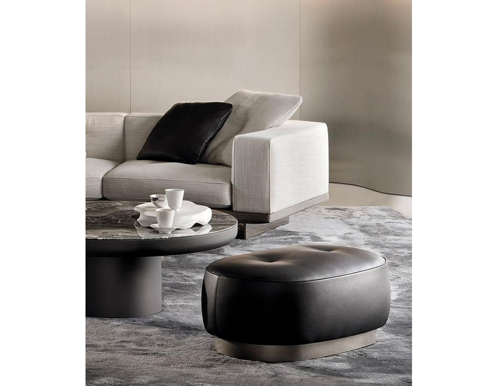 The ottomans, in different shapes and sizes, take up the design of the armchair base and, proposed on castors for easy movement, give the living room a more informal feel.